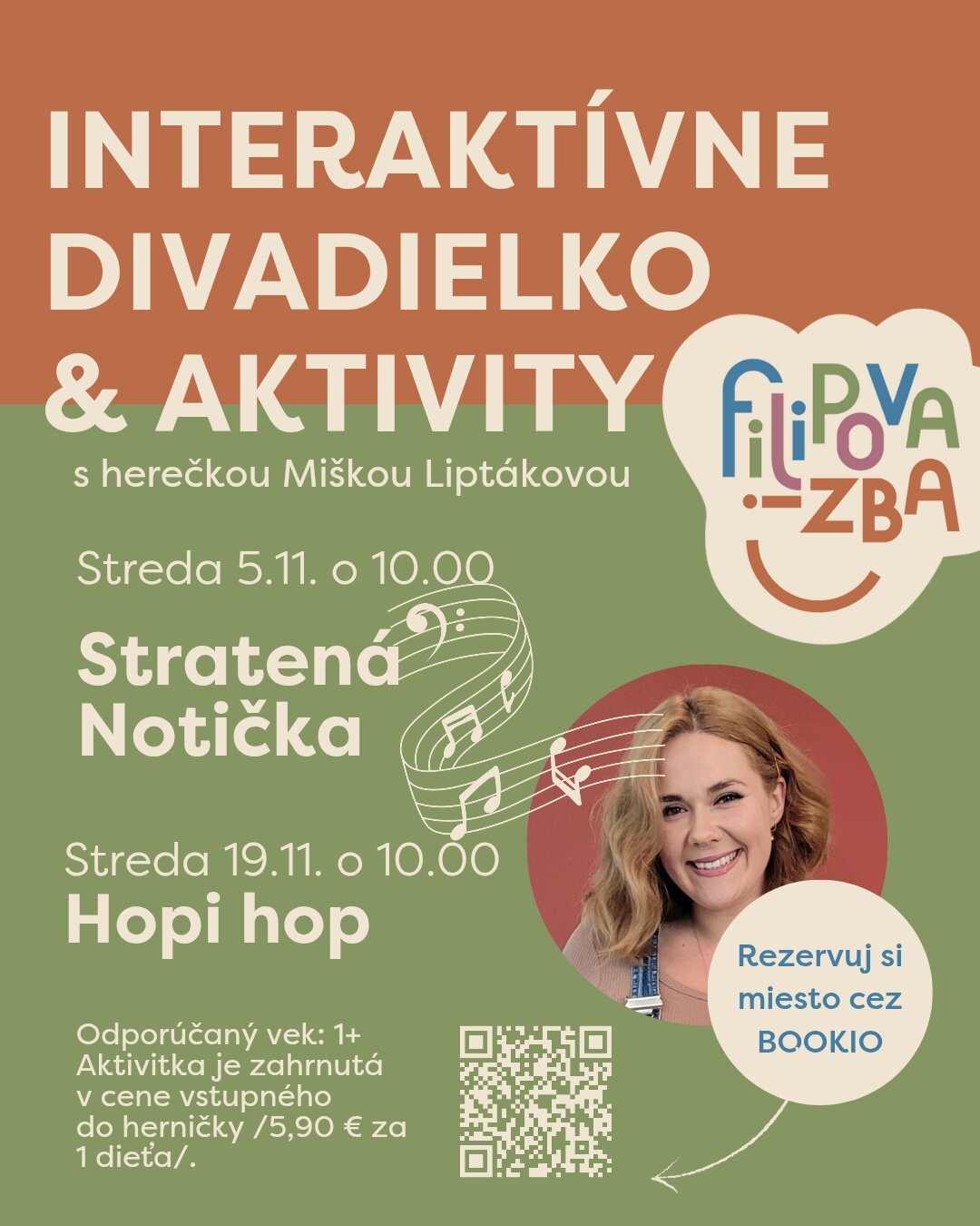 Vo Filipovej izbe pravidelne organizujeme interaktívne pohybovo - hudobné divadielka pre najmenších, kreatívne dielničky, messy play, workshopy pre deti aj rodičov na rôzne témy, ako napríklad Vnímavé nožičky, Zdravé zúbky, Pripravené montessori prostredie a pod., ako aj swapy kníh a hračiek a minidiskotéky, kde sa o zábavu starajú animátori a maskoti.